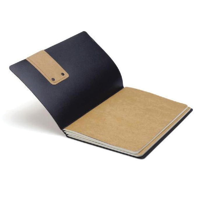 This A5 leatherette journal is a modular system of 2 refillable ruled kraft cover notebooks bound together with the external journal cover. When a notebook fills up, swap it for a fresh one while retaining the cover. The total page count is 120 pages / 60 sheets across the 2 notebooks.